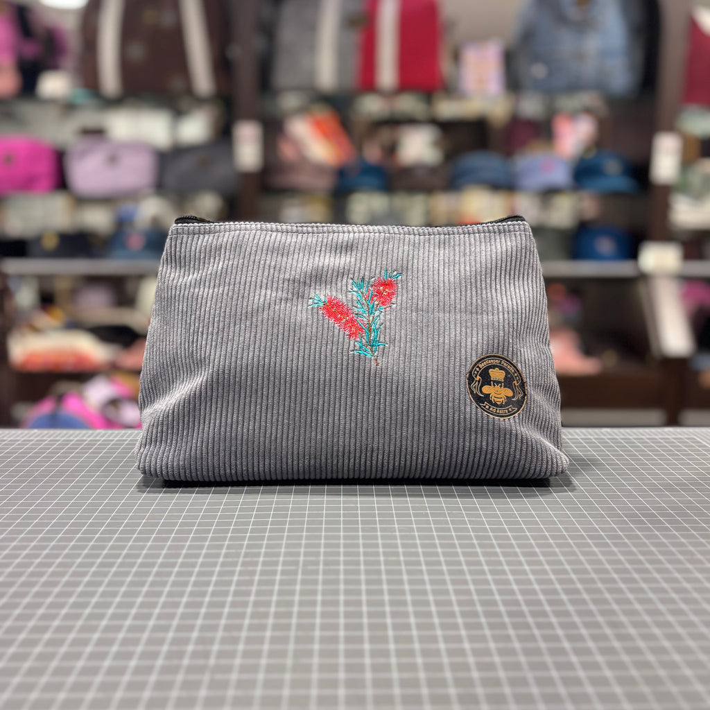 The Bottlebrush 🇦🇺🪡 on Gray Corduroy Large Toiletry + Makeup Bag