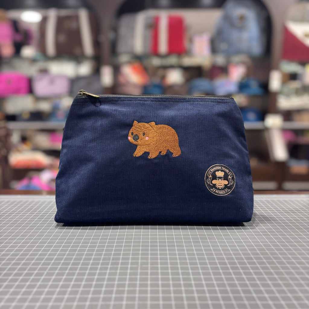 The Wombat 🇦🇺 on Navy Corduroy Large Toiletry + Makeup Bag